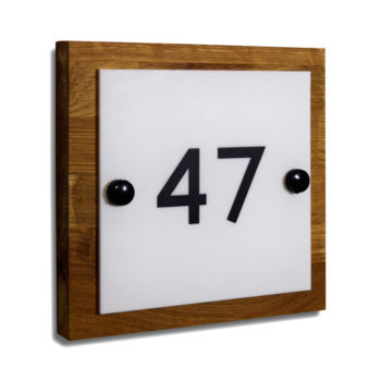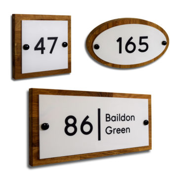 Personalised European Oak Solid Wood & Modern White Acrylic Combination Door Number