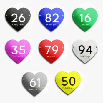 15cm x 14cm Heart Personalised House / Door Number Signs, Acrylic Glass Effect Door Number Plaque