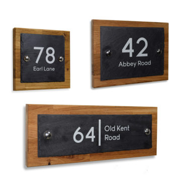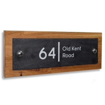 Personalised European Oak Solid Wood & Natural Welsh Slate Combination Door Number