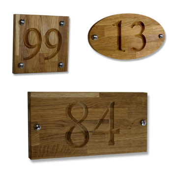 Personalised European Oak, A Solid Wooden V Carved & Engraved House Door Number