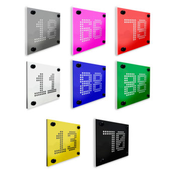 Our Acrylic door number plaques are made from the highest quality acrylic. Your house number will be professionally laser cut out of our high quality acrylic, before being printed onto by our large format UV printer. Our laser cutting and UV printing machines are state of the art, industrial printing tool. We guarantee a beautifully sharp high definition finished product. We offer these Personalised Door Number Signs, in a variety of sizes and colours.